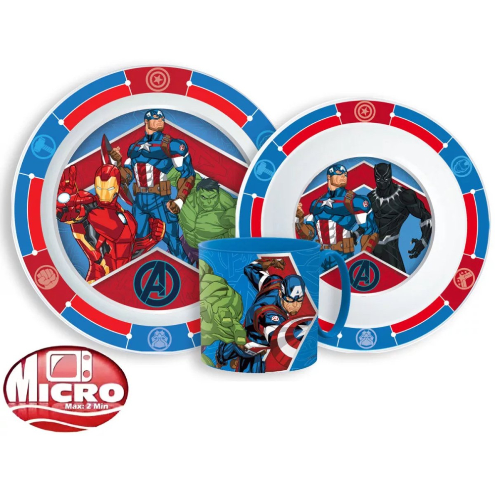 Laat jonge superhelden genieten van hun maaltijden met deze Avengers Marvel kinderserviesset. De set bestaat uit een bord, een kom en een beker, allemaal bedrukt met de bekende Avengers-helden zoals Iron Man, Captain America en Thor. Perfect voor kinderen die fan zijn van Marvel en hun favoriete helden graag bij zich willen hebben tijdens het eten.