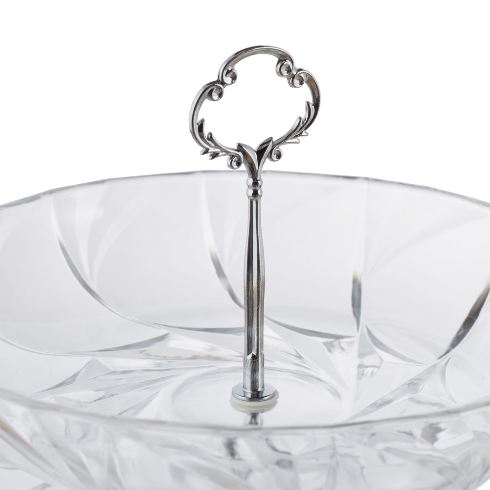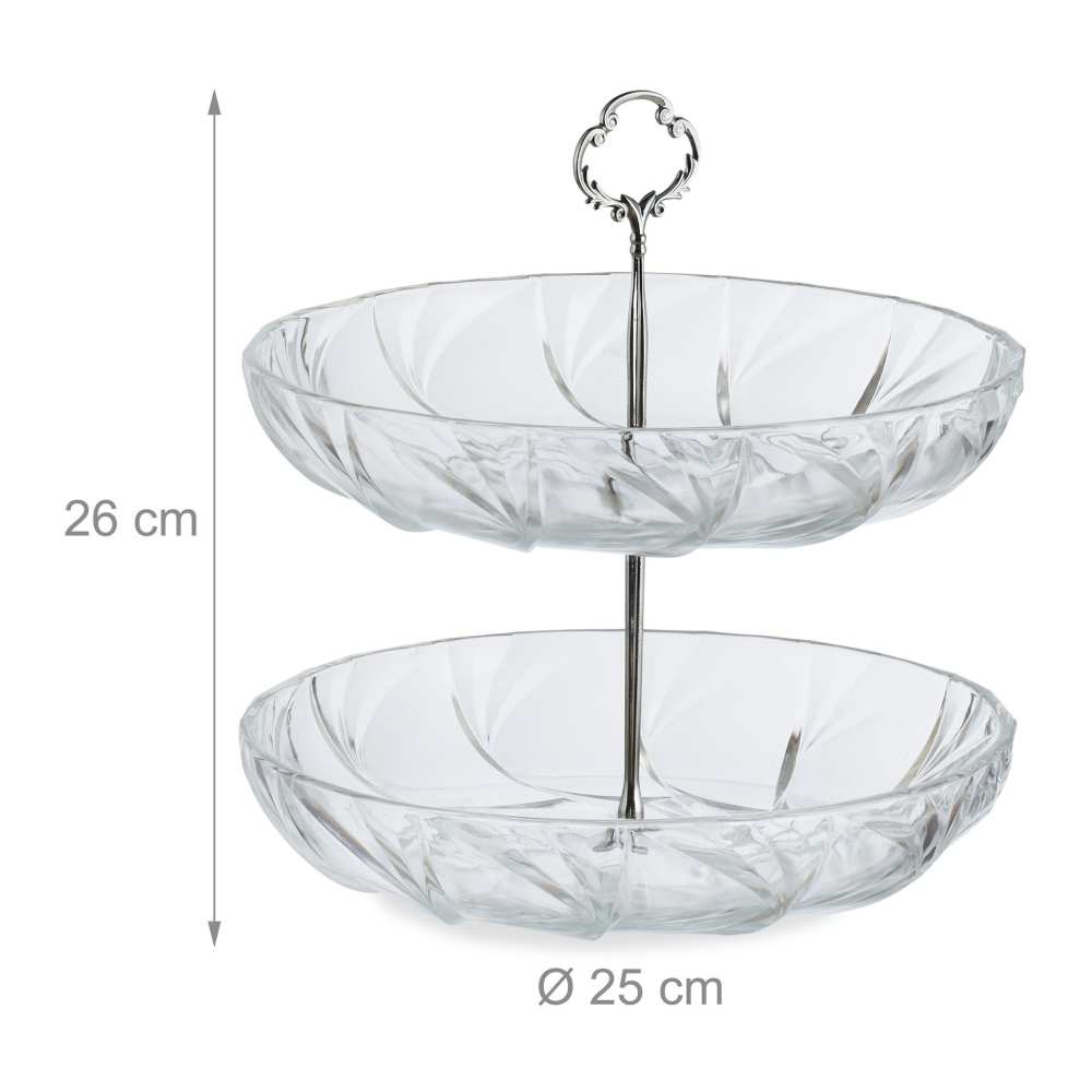 Glazen etagère 2 laags / Antieke serveerschaal voor buffet, bonbons, cupcakes etc.