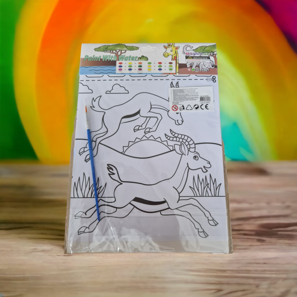 Kleurplaat Dieren met Verf. Het enige wat je nodig hebt bij deze kleurplaat is water.