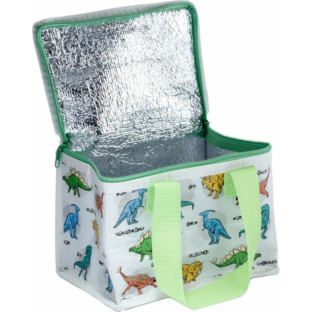 Handige lunch koeltas met Dinosaurus print om uw lunch of six-pack blikjes koel te houden. Afmetingen: 21 x 16 x 14 cm. Inhoud ca. 4,7 liter. Materiaal: RPET.