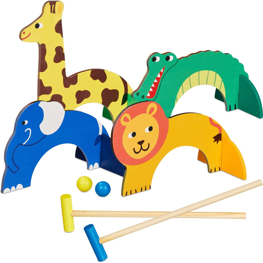Croquet spel voor kinderen - Houten buitenspel met hamers en ballen