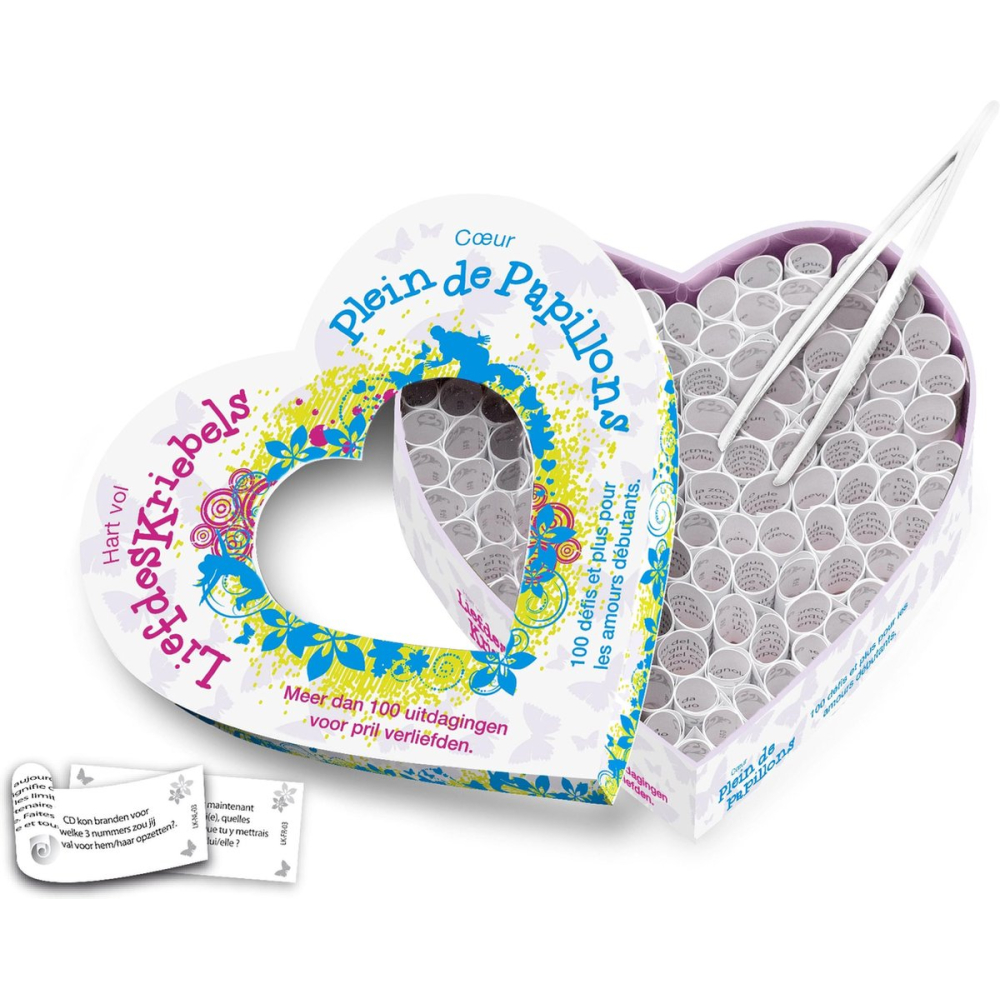 Met het Hart vol Liefdeskriebels leren pril verliefden elkaar op een speelse manier goed kennen. Op de ruim honderd rolletjes in het hart staan uitdagende vragen en verrassende opdrachten, die zeker zullen zorgen voor heel veel plezier!Je bent smoorverliefd! Met één stralende blik in elkaars ogen verdwijnt de hele wereld om jullie heen. De glimlach is niet van jullie gezicht te branden en op deze heerlijke roze wolk van verliefdheid lijkt jullie energie wel nooit op te raken. Je kan niet wachten tot je elkaar weer ziet. Het liefst wil je alles van elkaar weten, maar heel makkelijk om alles te vragen en te vertellen is het niet…Op de papieren rolletjes in het Hart vol Liefdeskriebels staan vragen en opdrachten. Om de beurt nemen jullie een rolletje uit het hart en komen zo veel van elkaar te weten. En wie weet wat er nog meer kan gebeuren!Ben je pas verliefd, of ken je iemand die net verliefd is? Dan is Hart vol Liefdeskriebels het perfecte cadeau!